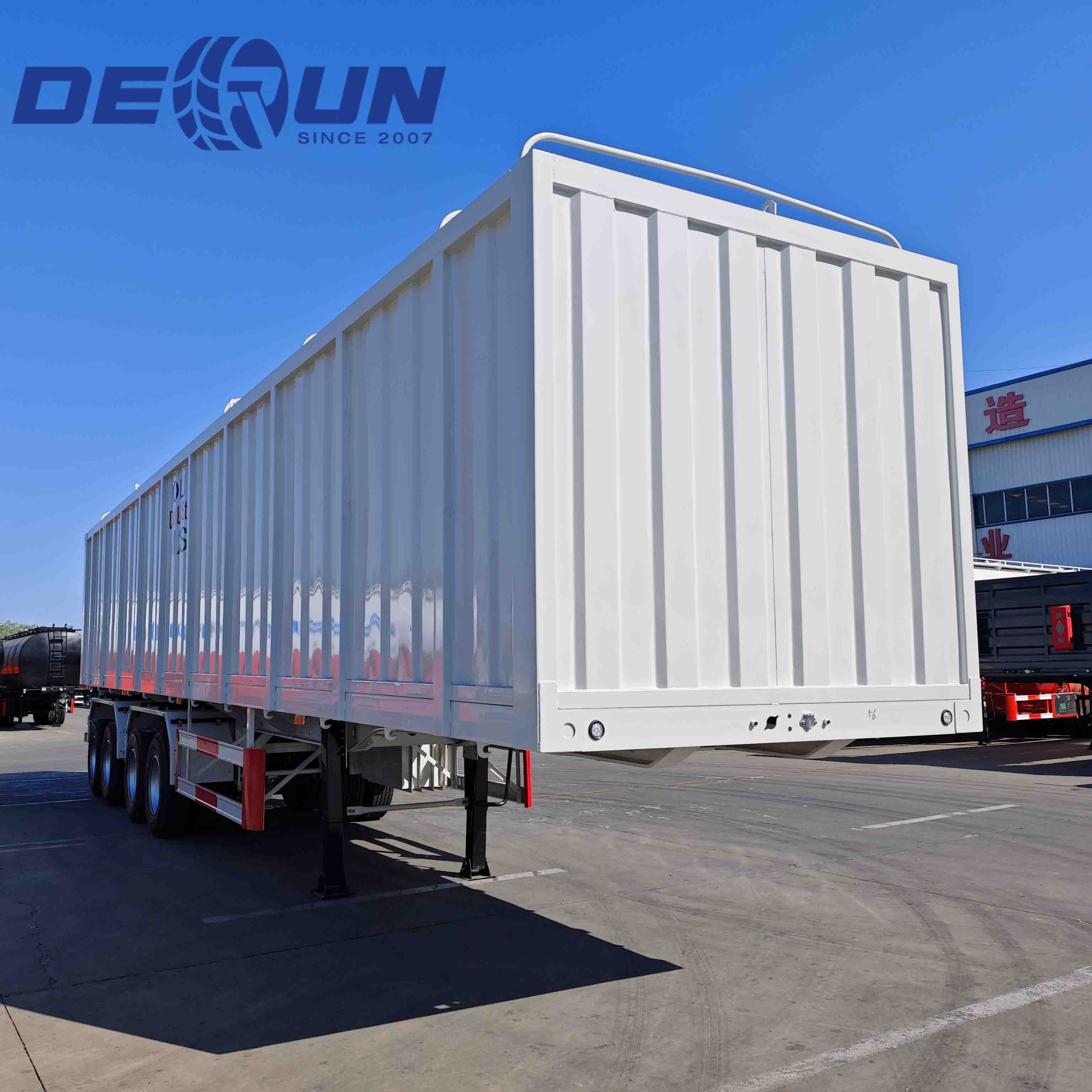 Полуприколица за кутицу Дерун Фоур-Акле са церадом је логистичка приколица високо заптивача опремљена кровом платна увлачење. Задржава простране и квадратне предности традиционалних приколица у кутији док додају водоотпорне, отпорне на сунчање и брзо распоређени софт кровни систем на врху. Изглед са четири осовине смањује се једно осовинско оптерећење, обезбеђујући глатку операцију и чинећи га идеалним за транспорт на дуже даљине. Спољашњи дизајн је углађен, са глатким линијама тела и капуљач са ниским повлачењем, балансирање лепоте са ефикасношћу горива.